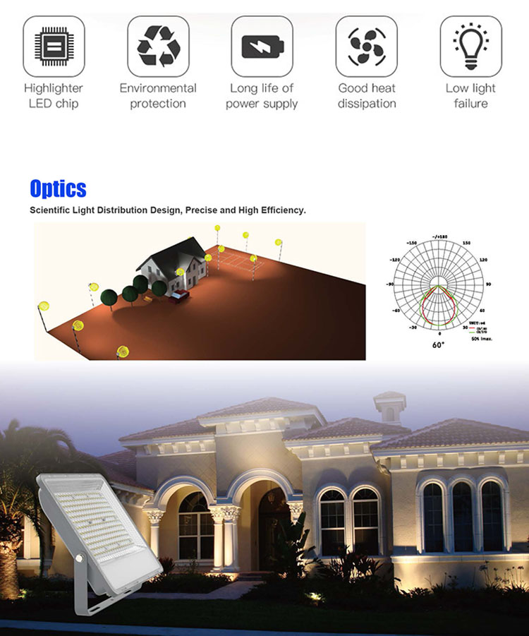 Optical Lens 60 and 120 degree available of SMD LED Flood light: